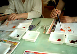 ペースト状・粉状のものがあります。筆に水を濡らして溶きます。