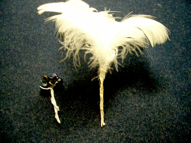 スワロ下から2センチの位置で、スワロと羽根のワイヤーをカットしてそろえる。