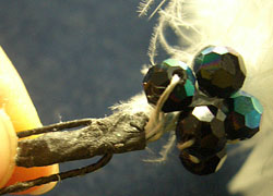 スワロフスキーはワイヤーの中央に通す。